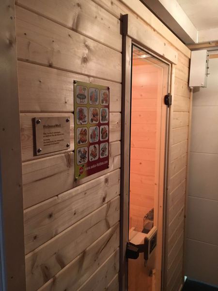 Um den Wohlfühlfaktor zu erhöhen, haben wir nun auch eine Sauna direkt im Haus, bzw. nebenan im Holzschuppen, so dass Sie nicht mehr auf die Gemeinschaftssauna angewiesen sind. Die Sauna ist große genug für 2 - 4 Personen. Die Sauna wird über den Münzautomaten aktiviert (2,- Euro für 2 Stunden).