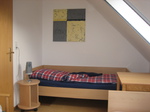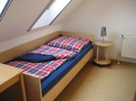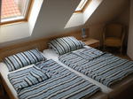 In der 1. Etage befinden sich ein Schlafzimmer mit Doppelbett und Kleiderschrank (mit kleinem Tresor) und ein weiteres Schlafzimmer mit zwei Einzelbetten, Kleiderschrank und Sitzgelegenheit. Alle Fenster in den Schlafräumen sind mit Jalousien zur Verdunkelung und Fliegenschutzgittern ausgestattet.